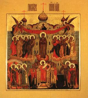 Новых праздников явилось в Русской Церкви пять. Четыре из них имели только местное значение, т. е. в одной Русской Церкви или, вернее, только в некоторых областях ее. Таковы: а) праздник 18 июля в память явления Богоматери Андрею Боголюбскому, установленный по воле его около 1158 г.; б) праздник 27 ноября в воспоминание чудесного знамения от иконы Божией Матери, бывшего в Новгороде при отражении суздальцев, установленный Новгородским святителем Иоанном в 1169г.; в) праздник 23 мая в память открытия честных мощей святого Леонтия, епископа Ростовского, в 1164 г., установленный спустя несколько лет Ростовским епископом Иоанном (1190 - 1214); г) праздник 15 мая в память открытия мощей святого Исаии, епископа Ростовского, одновременно с мощами святого Леонтия, установленный, вероятно, тогда же. Могло быть, что подобным же образом у нас установлено тогда несколько и других местных праздников в память явления прочих чудотворных икон и открытия святых мощей, о которых мы говорили, хотя сведений о том не сохранилось. Праздник, с самого начала получивший значение не только в Русской Церкви, но и в Греческой, установлен по взаимному сношению нашего великого князя Андрея Боголюбского и греческого императора Мануила. Случилось так, что оба они в один и тот же день - 1 августа 1164 г. - выступали с войсками против врагов Креста Христова, Боголюбский - против болгар, Мануил - против сарацин, и оба одержали над врагами решительные победы, которые единогласно приписали помощи небесной, потому что, совершая в тот же день благодарственное молебствие за победы пред иконами Всемилостивейшего Спаса и Его Пречистой Матери и честным крестом, которые находились при войсках, оба удостоились видеть огненные лучи от иконы Спасителя, покрывшие их полки. В память такого чудесного события и положено было, с обоюдного согласия Церквей Греческой и Русской, совершать в 1-й день августа праздник во славу Всемилостивейшего Спаса и Его Пречистой Матери, а также поклонение Честному и Животворящему Кресту, которое прежде совершалось в Константинополе в продолжение нескольких дней сряду в конце июля и в начале августа вместе с крестными ходами по всему городу. Этот новый праздник Всемилостивейшему Спасу известен по несомненным нашим памятникам XII или начала XIII в., и в Церкви доселе употребляется в 1-й день августа служба, составленная неизвестно кем по сему случаю. В соблюдении прежних праздников, постов и вообще священных времен Церковь Русская была согласна с Греческою, в чем легко убедиться из сохранившихся русских месяцесловов XII и XIII вв. Кроме того, о некоторых древних праздниках и постах, соблюдавшихся в нашей Церкви, упоминают и летописи, например о праздниках Пасхи, Пятидесятницы, Рождества Богородицы, Благовещения, Рождества Иоанна Предтечи, святых апостолов Петра и Павла, Воздвижения Креста; о неделях - сыропустной, крестопоклонной, вербной; о постах - Великом, Филипповом.