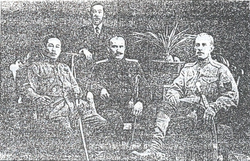 Атаман Семенов (в центре) со своим адъютантом (крайний справа) и членами