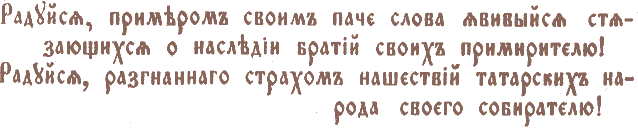 Сверх сего за то, что ты не захотел преклонить выи пред свирепостью татар, мы прославляем